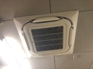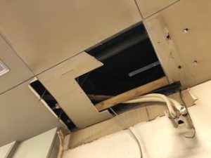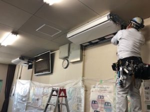 数十年、夏・冬と大活躍していた現場の食堂と更衣室の空調機が故障してしまい、